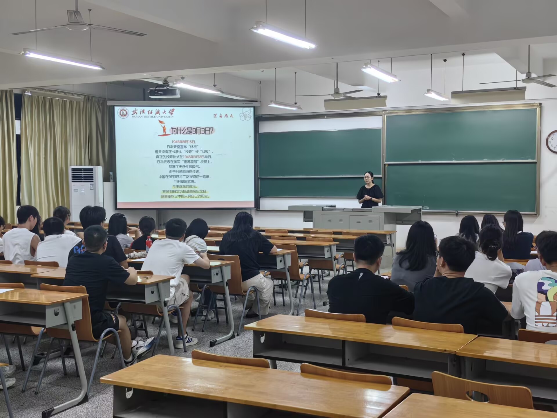 在班会上,各年级班主任老师通过带领同学们回顾从“九一八”事变到日本签署投降书的光辉历程,让同学们深刻认识到抗日战争伟大胜利的深远历史意义,体会到今日和平的来之不易。