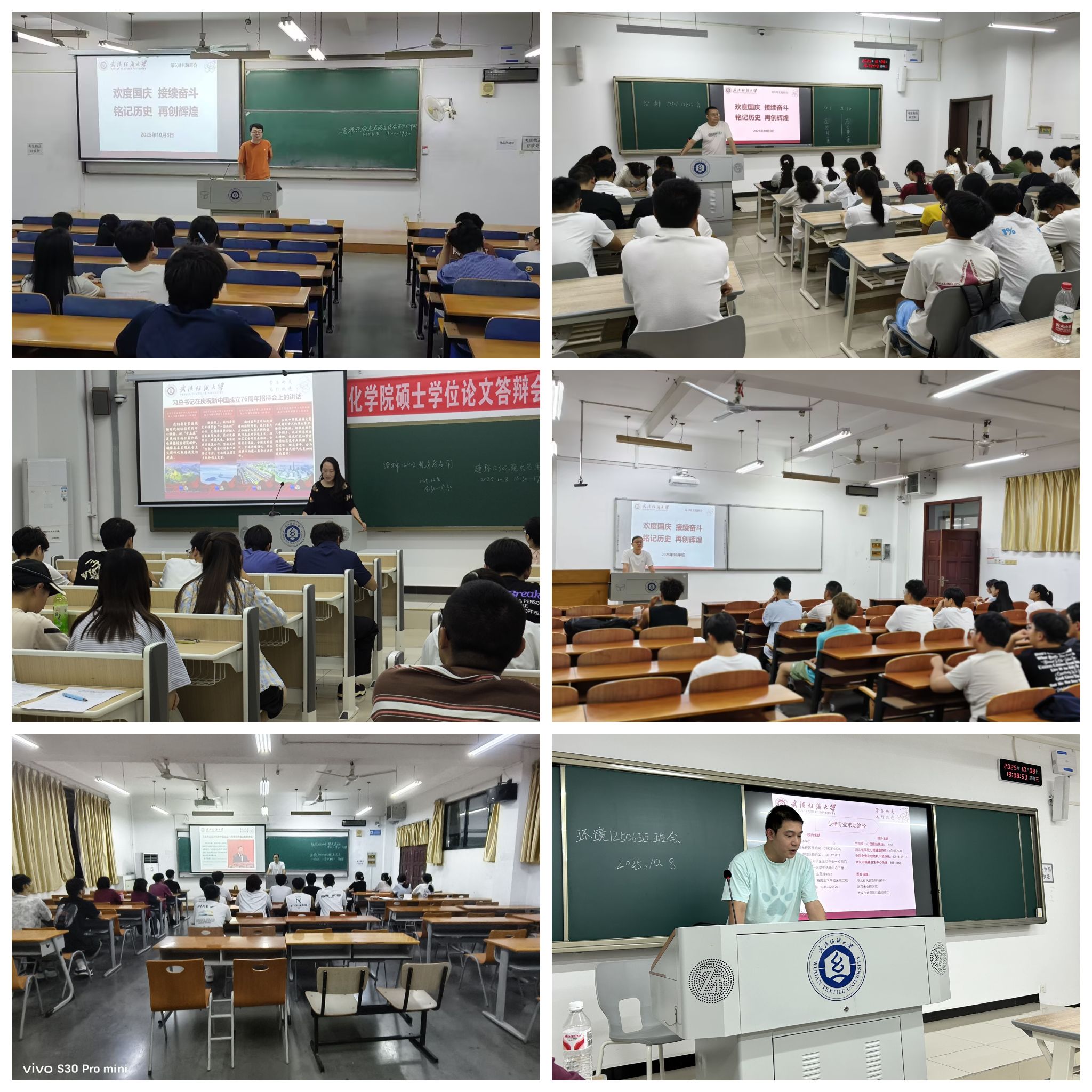 为庆祝新中国成立76周年,迎接世界精神卫生日,我院研究生及本科生各年级于10月8日晚在崇礼楼组织召开了“欢度国庆 接续奋斗 铭记历史 再创辉煌”主题教育班会和世界精神卫生日主题班会。各年级辅导员、班主任共同参会,引领青年学子将爱国情怀与心理健康融为一体。