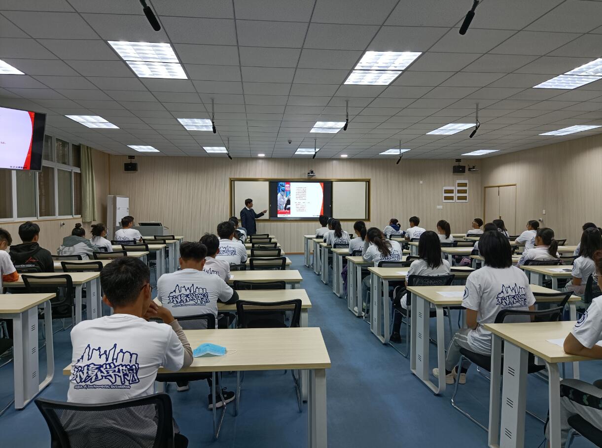 最后,杨教授还带领同学们齐声朗诵《环境:您人类的命运》这首诗歌颂环境的诗歌,他将环境学科的历史与深厚的文化底蕴展现的淋漓尽致,字里行间满是殷切希望,增添了同学们学院、专业的自豪感,鼓舞他们为生态文明建设做出更大贡献。