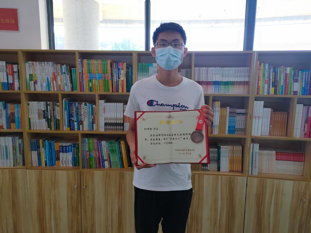 活动中,学院副书记刘园美将学校抗疫先进个人荣誉证书和奖章郑重转交给支部党员胡博凯。疫情期间,胡博凯积极响应号召,主动请缨成为一名志愿者,走村入户核查居民身体健康,帮助百姓解决实际困难;疫情结束后,又帮助当地企业进行全面消杀、科学防控、复工复产,赢得了居民和企业的一致认可。