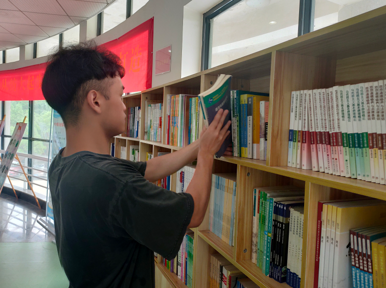 2019年,学院从有限的办公区挤出一块空地建成“漂流书吧”。书柜、沙发、茶几、电子资源查阅机一应齐全,专业教材、外语、计算机、考研、创新创业、党建思政、安全教育等书籍琳琅满目,极大地方便了师生课间休息、阅读、借阅、查询等,书籍主要来源于学院老师及相关部门的捐赠。李雄杰担任学院建环学生党支部副书记,于是他与支部党员一合计,主动认领了书吧的日常维护工作,并将“党员示范岗”挂到书吧,在紧张的学习之余,大家定期轮流来清理书籍、打扫书吧,这一干就是2年多。