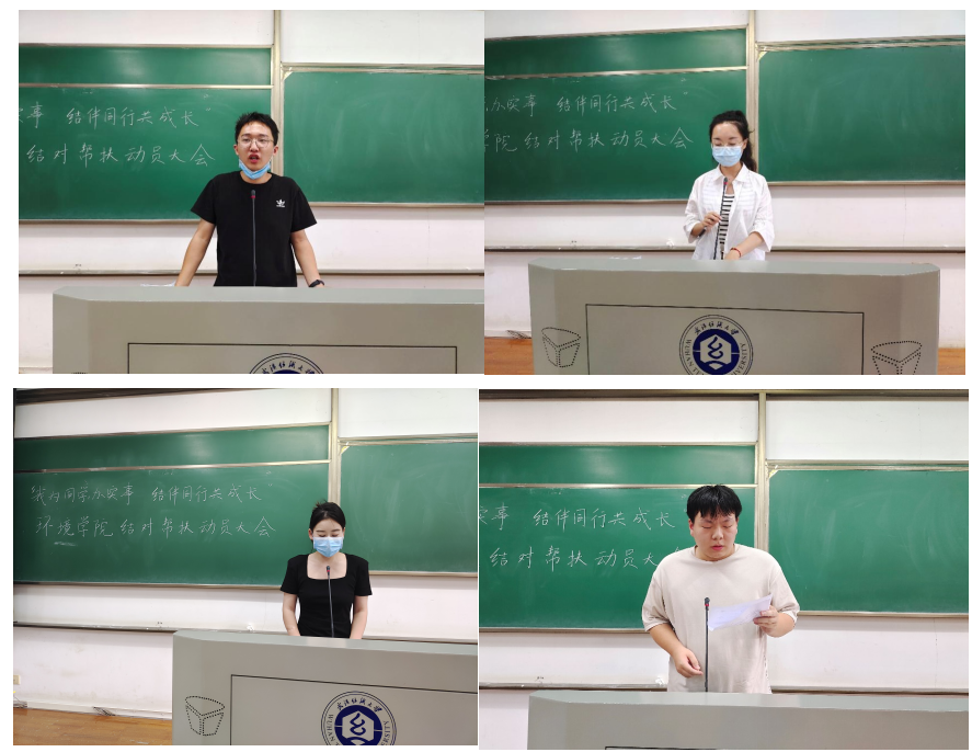 党员代表环工11901班张思羽、学生干部代表环科12001班邵正分别发言,表示会履行好自党员干部的职责,以身作则,为结对同学做好服务,从点滴小事入手,为同学排忧解难。