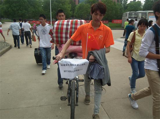 环境学院的迎新小组分为接待组,后勤保障组,咨询组,分别接待新生,帮忙新生搬运行李,帮助学生顺利完成报到工作。在行李搬运的过程中,由于有些同学的行李过多不易搬运,为了帮助新生更快地到各个地点办理手续,环境学院党支部组建了爱心车队,用自行车托着大包小包的行李运送到各个地点,轻松高效的解决了行李搬运难的问题。报到期间环境学院领导班子及全体辅导员都为迎新奔走忙碌,为家长和学生答疑解惑,使迎新工作更高效有序地进行。
