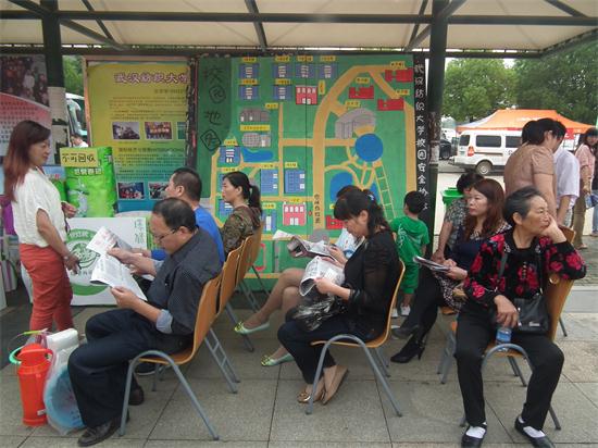 9月7日下午三点,”学长学姐讲解团”的成员开始分批带领学生及家长参观环境学院的教学资源,帮助新生了解学习环境。一路上,志愿者们耐心为学生及家长们讲解了每一栋教学楼的名称与历史,并引导学生家长参观了纺织印染中心重点实验室、环保创新园区等。 “良好的学习环境能为学生提供学习的便利,把孩子交到这样环境优良的学校,我放心。”一位学生家长在参观后发出如下感慨。