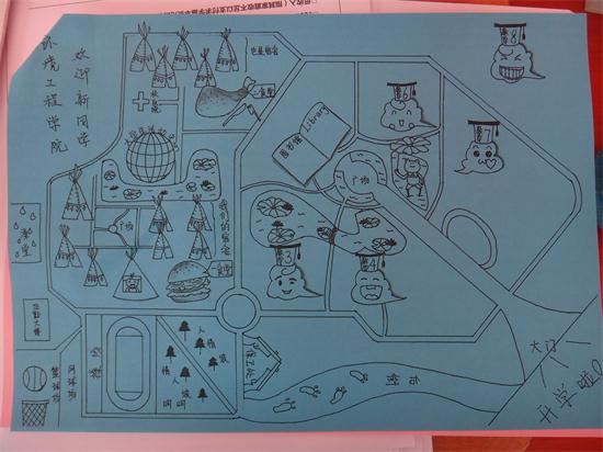 为彰显学院特色,宣传环保理念。环境学院的学长学姐们制作的一系列环保工艺品也成为此次迎新工作的一道亮丽的风景线。此次DIY中最具特色的是一只手绘环保垃圾桶,这只绿色的环保垃圾桶是由废纸壳制作的,共分为可回收、不可回收两个类别。既可以解决新生手边废物无法及时丢弃的问题,又可以让垃圾分类的概念更加深入人心。还有精心绘制的校园地图,让新生迅速了解学校教学、生活资源的分布。