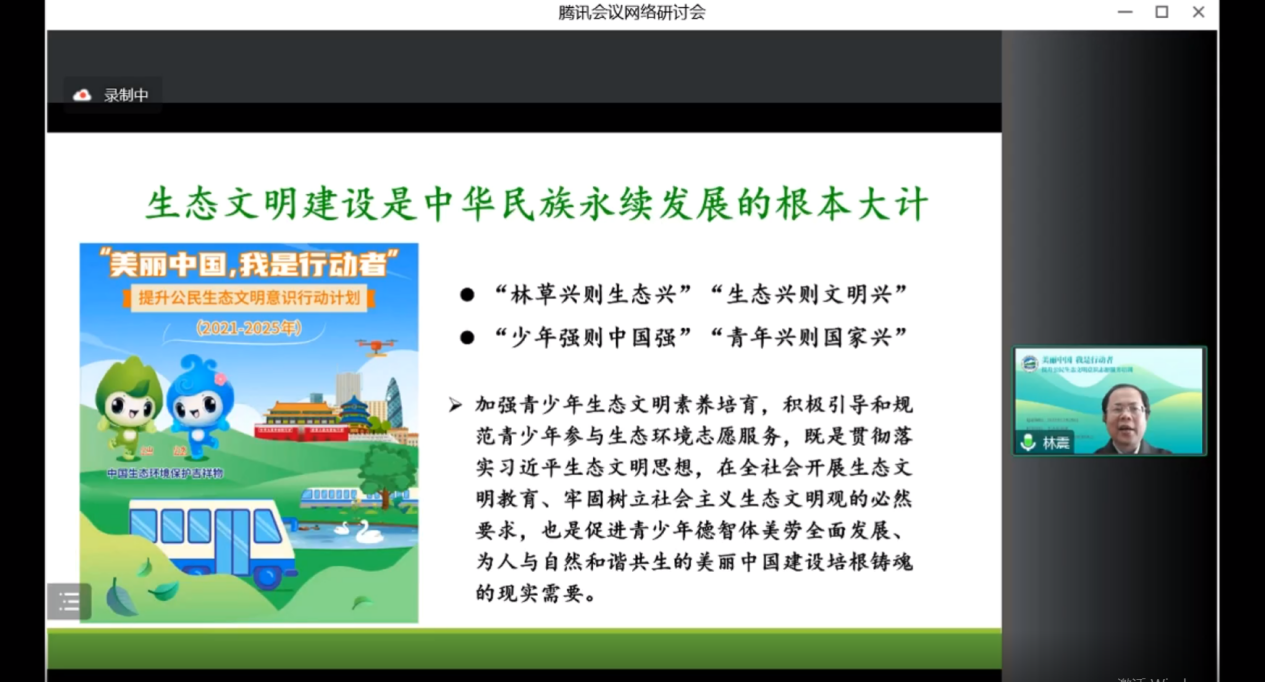 生态文明建设是中华民族永续发展的根本大计。本次培训聚焦习近平生态文明思想的传播和实践、生态环境志愿服务的创新和发展、系统落实相关政策部署的有力举措,为进一步开展生态文明志愿服务提供了方向和思路。