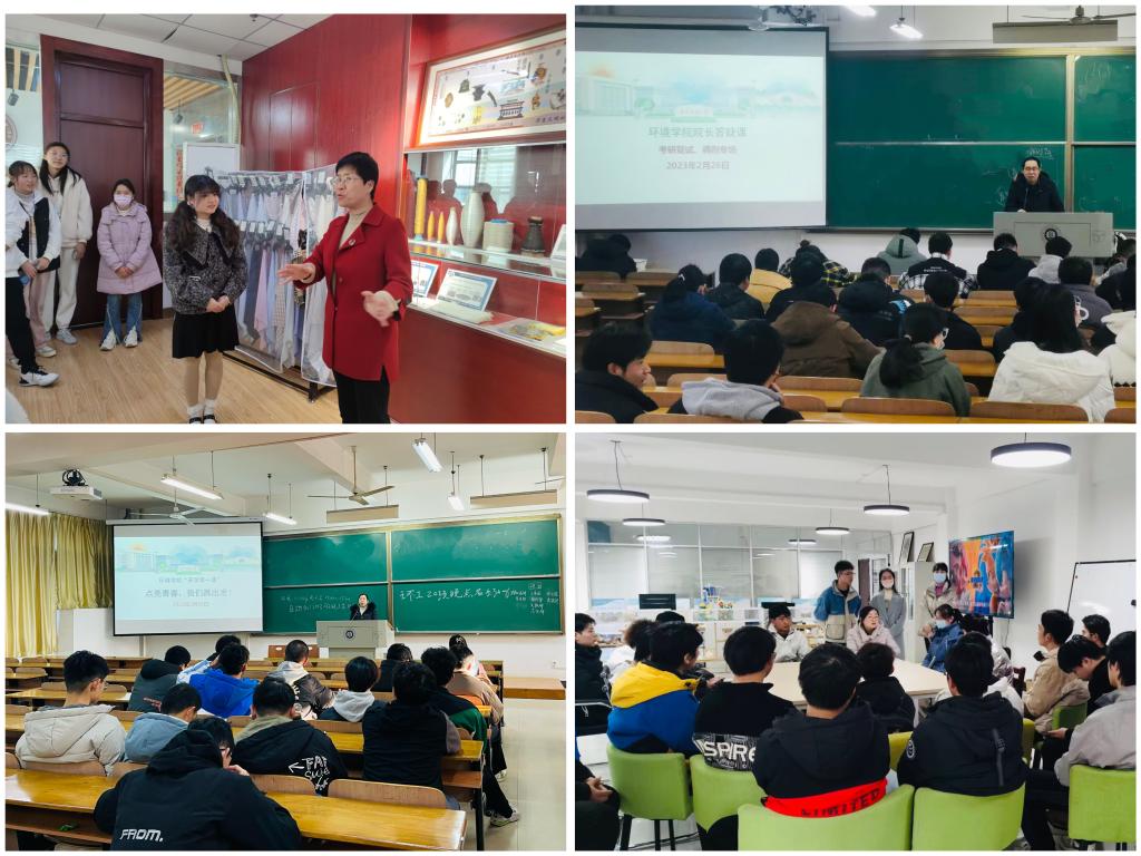 3月2日,学院党委书记谢晓萍在纺织新材料与先进加工技术国家重点实验室为环工12201、12202班同学开讲“开学第一课”,她用月面展示国旗、特殊材料等学校取得的重大科研成果鼓励同学们厚植科学素养,加深对专业、学科的了解,增强同学们爱校荣校意识。2月26日晚,学院院长潘飞在崇礼楼110教室为19级学生开展“院长答疑课”考研复试调剂专场,针对如何准备复试、如何进行相近专业调剂,潘飞进行了耐心解答。副院长蔡亚君面向结对班级学生开展主题班会和互联网+竞赛政策解读,鼓励学生发挥专长,组团参赛,将专业学习融入进竞赛中,提升实践能力。学院党委副书记姚瑶通过主题班会、座谈会等形式,在学院“一站式”学生社区为同学们答疑解惑,为学生社区“共建”“共治”“共管”征求意见和建议,聚焦学生需求提供对应服务。
