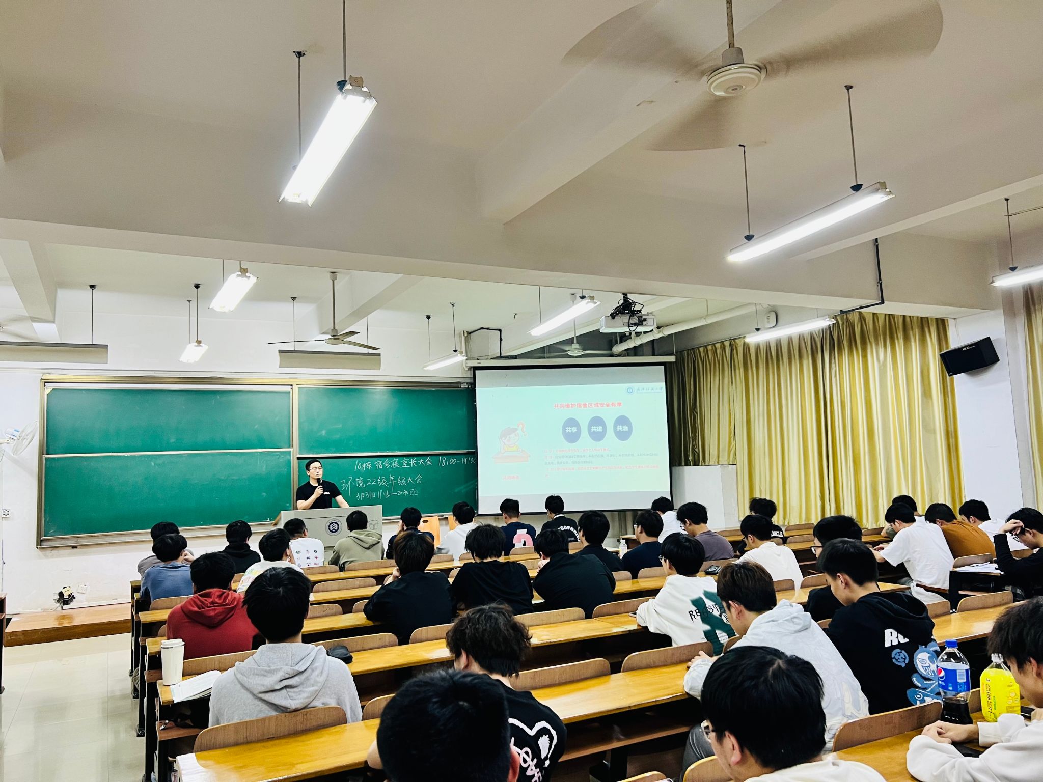 各班主任及年级辅导员引导同学们以“共享共建共治,宿舍安全有你有我”的理念做好宿舍自我建设、自我管理工作,杜绝大功率电器、电动车等进入宿舍,完成电动车校园登记,共同守护宿舍消防安全;同时,也提醒同学们按时返寝,规律作息,调整好状态,以饱满的精神投入第二天的学习和生活。