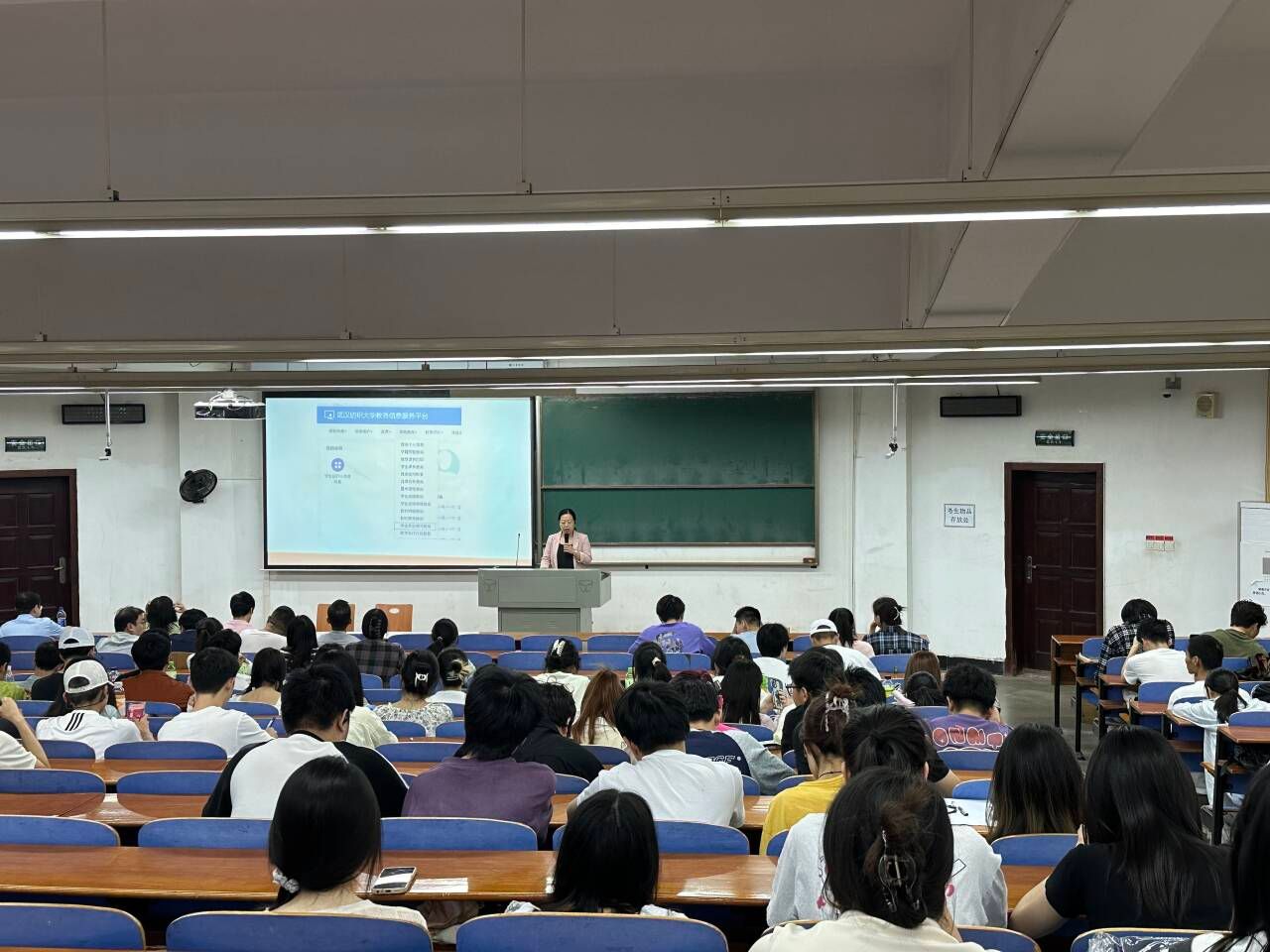 姚瑶介绍了当前的就业形势,并通过数据分析的形式对学院24届毕业生的考研就业情况进行了梳理,分析了同学们在考研备考、求职过程中存在的问题和困难,建议大家早规划、早行动,结合实际设定合理目标。