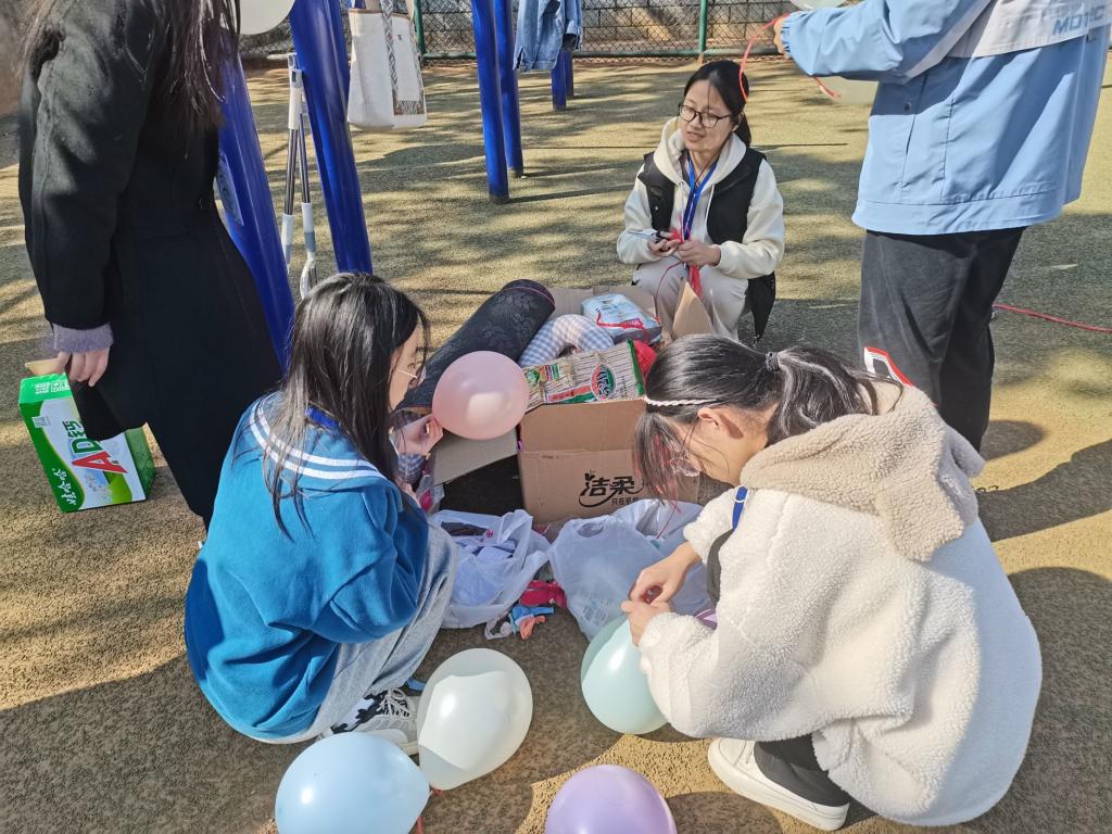 除了室内设计,寝室文化节活动还有室外娱乐环节,在阳光明媚的操场上,“筷子夹乒乓球”、“正话反说”、“螃蟹赛跑”、“你画我猜”等团队协作活动在同学们的欢声笑语中进行着。