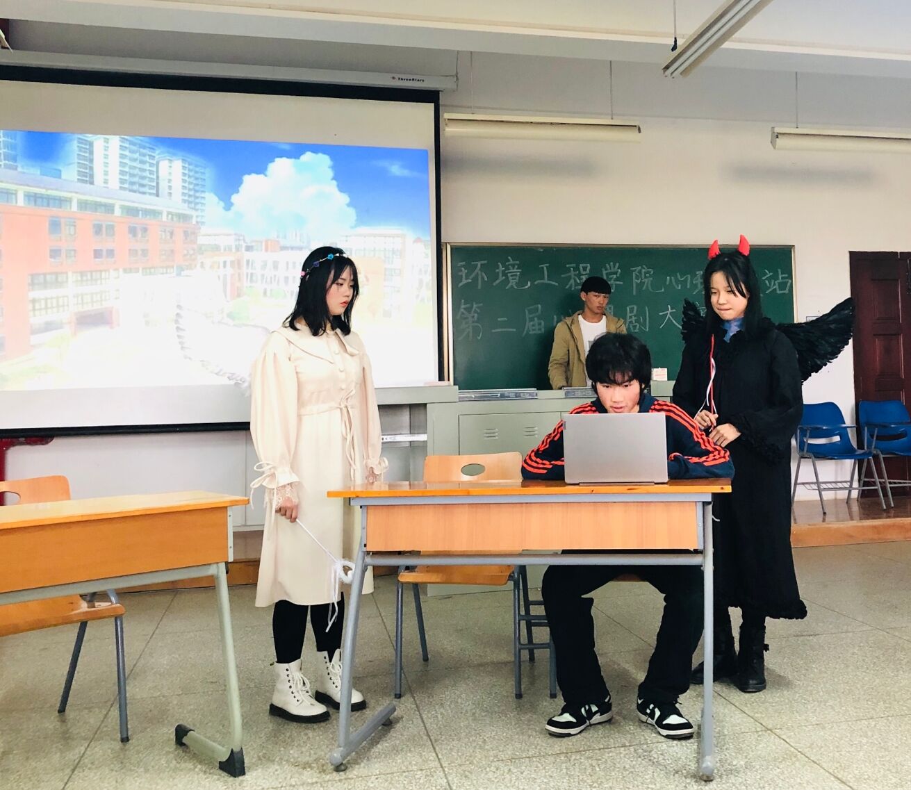 本次比赛的主题为“心魔”和“不能说的秘密”,九支团队聚焦人际交往、学习压力、情绪管理、恋爱心理、爱国主义等主题,从多角度展示了大学生的心理成长过程。给排水11901班的《网络恶魔》荣获一等奖,它讲述了大一学生李明怀揣着梦想来到大学,却慢慢的沉迷网络游戏淡忘最初的理想,一直在心中的“天使”与“恶魔”徘徊,内心痛苦纠结,后来明白父亲与姐姐的不容易而改过自新,重拾梦想。