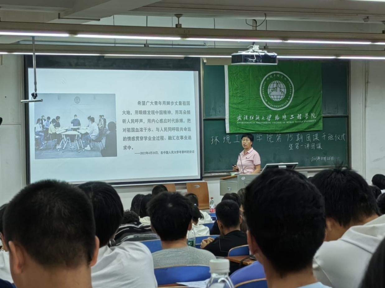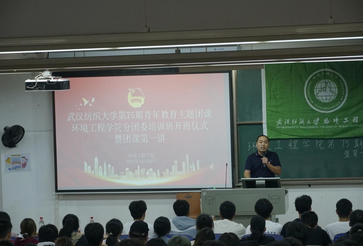 为加强对青年和团员的培养教育,深化广大青年和团员对党的二十大精神的理解,加强对党的创新理论的把握,williamhill第75期青年教育主题团课环境工程学院分团委开班仪式暨团课第一讲于10月26日在崇志楼T-102隆重召开。学院党委书记谢晓萍应邀主讲,学院党委副书记姚瑶、学院团委书记毛成兴,新生辅导员张宇航以及23级全体学生参加了本次开班仪式并聆听讲座,活动由毛成兴主持。