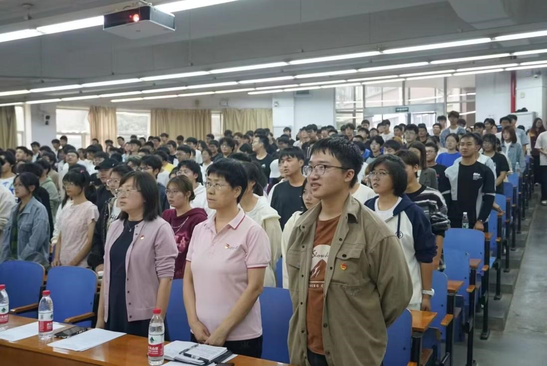 团课开始,同学们以饱满的热情共唱团歌《光荣啊!中国共青团》,随后毛成兴宣读了团课要求及相关安排。