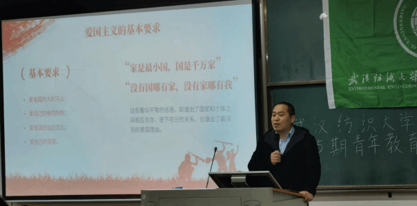 毛成兴从什么是爱国主义、中华民族的爱国主义传统、新时代的爱国主义、如何做好新时代的爱国者四个方面详细阐释了爱国主义,指出爱国既需要情感的基础,也需要理性的认识,更需要实际的行动,希望同学们树立“平凡小事也是爱国”的理念,从身边小事做起,担当起“环境人”的使命。他还明确指出参军入伍,更是爱国的一种表现,鼓励同学们携笔从戎,戍守边疆。