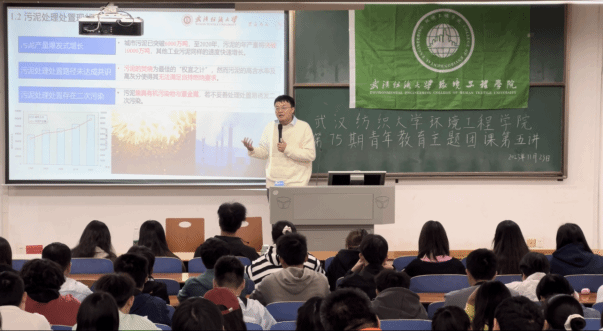 为深入开展团员和青年教育,学院第75期青年教育主题团课第五讲于11月23日在崇志楼T-102开展。williamhill五四青年奖章获得者、副教授王腾主讲《污泥的低碳处理处置技术前沿》科技专题讲座,学院团委书记毛成兴主讲《爱国主义教育》主题讲座,2023级辅导员、退役大学生代表、国防迷彩团学生代表、23级全体学生参加。