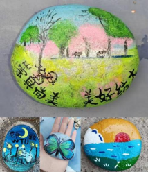 “美在纺大”石头画制作沙龙活动由环境学院石头画协会组织的,分线下绘画展示和线上抖音直播教程展示两个环节,活动设定了“美在纺大”“65周年校庆”等主题,慕名而来的同学纷纷拿起画笔,蘸上颜料,在小小的石头上创作,方寸之间彰显山河。