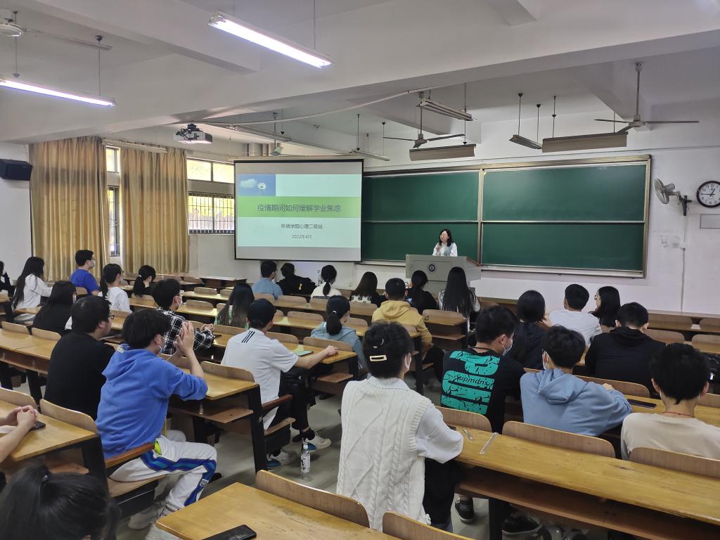 47日下午,一场“疫情期间如何缓解学业焦虑”减压讲座在06-110教室开展,学院辅导员姚瑶面向全院学生讲解。