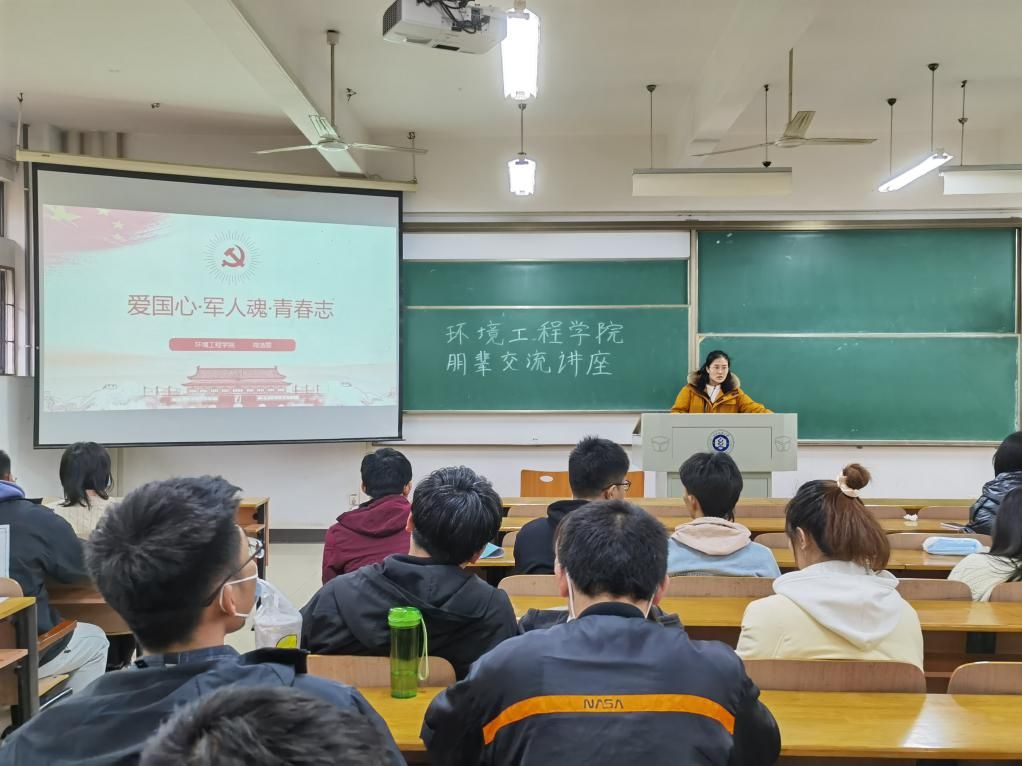 为培养青年学子爱国情怀,鼓励毕业生积极投身绿色军营,3月21日下午5点,环境学院在崇礼楼110室举行了朋辈领航讲座,退伍士兵、建环11803班班长肖洁丽以“爱国心·军人魂·青春志”为题,分享了她的军旅故事,激励同学们在军营中淬炼青春。