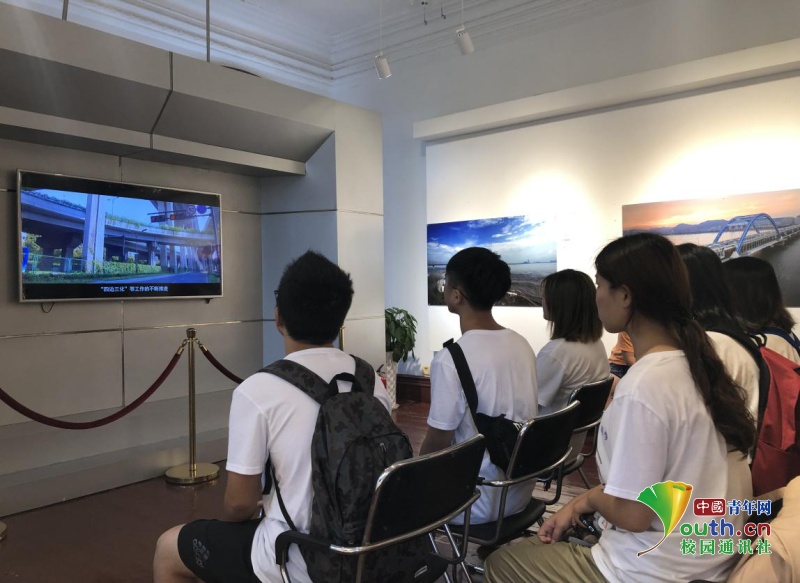 图为队员们观看杭州城市规划。